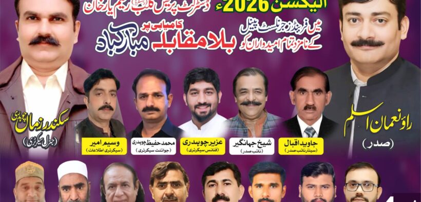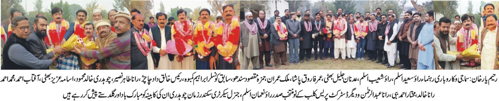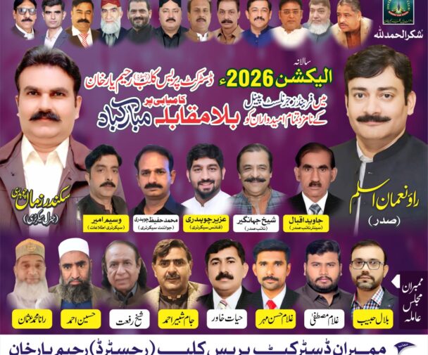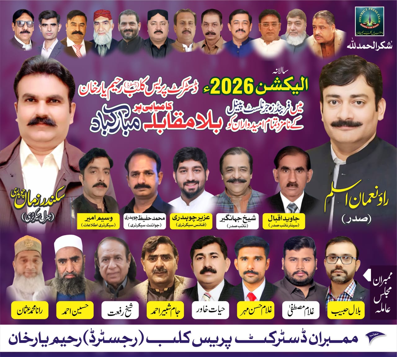 رحیم یارخان (بگ ڈیجٹ) ڈسٹرکٹ پریس کلب (رجسٹرڈ) رحیم یارخان سال 2026 کی نومنتخب کابینہ