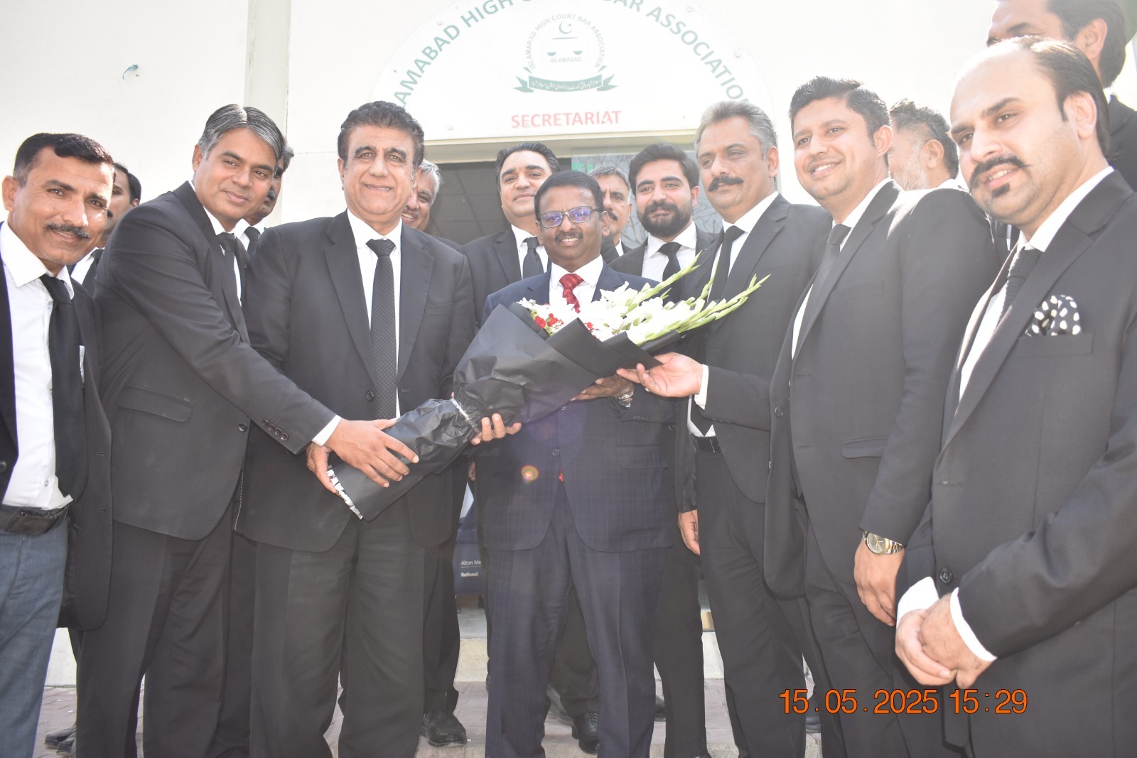 On 15th May Islamabad – The High Court Bar Association Islamabad had the distinct honor of welcoming His Excellency, Mr A.Christy Ruban the High Commissioner of Sri Lanka, on his official visit to the Bar. The distinguished guest was warmly received by Mr. Syed Wajid Gillani President of the High Court Bar Association, Mr. Chaudhary Manzoor Ahmed Jajja Secretary of the Association, Mr. Zaildar Ahsan Shah, Chairman International Relations Committee, Mr. Murtaza Khan Vice Chairman International Relations Committee, Mr. Safeer Shah Member International Relations Committee ,Mr. Chaudhary Yaseen Iqbal Member International Relations Committee, Mr. Fahad Chaudhary Member International Relations Committee , and Cabinet of Islamabad High Court Bar .