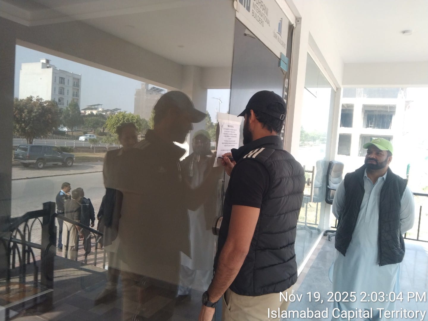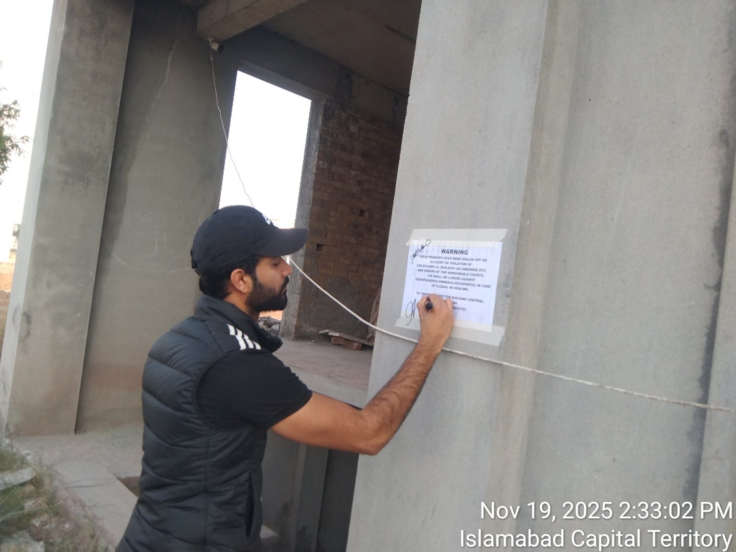 ISLAMABAD (Big Digit): (PR: Dated November 19, 2025): In line with the direction of Chairman Capital Development Authority (CDA) and Chief Commissioner Islamabad, Muhammad Ali Randhawa, action against unauthorized constructions and violators of building bylaws in Islamabad has been further intensified. In this regard, the Building Control Section, with the support of the Enforcement Wing, the district administration, and Islamabad Police, conducted operations in various areas of the city on Wednesday. Sealing 28 buildings for violations of the CDA Ordinance 1960 and Building Control Regulations 2020, and also issuing notices to the owners violating the said regulations.