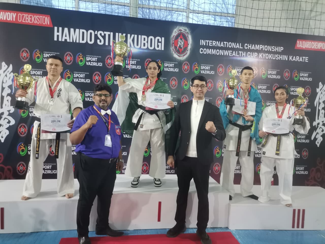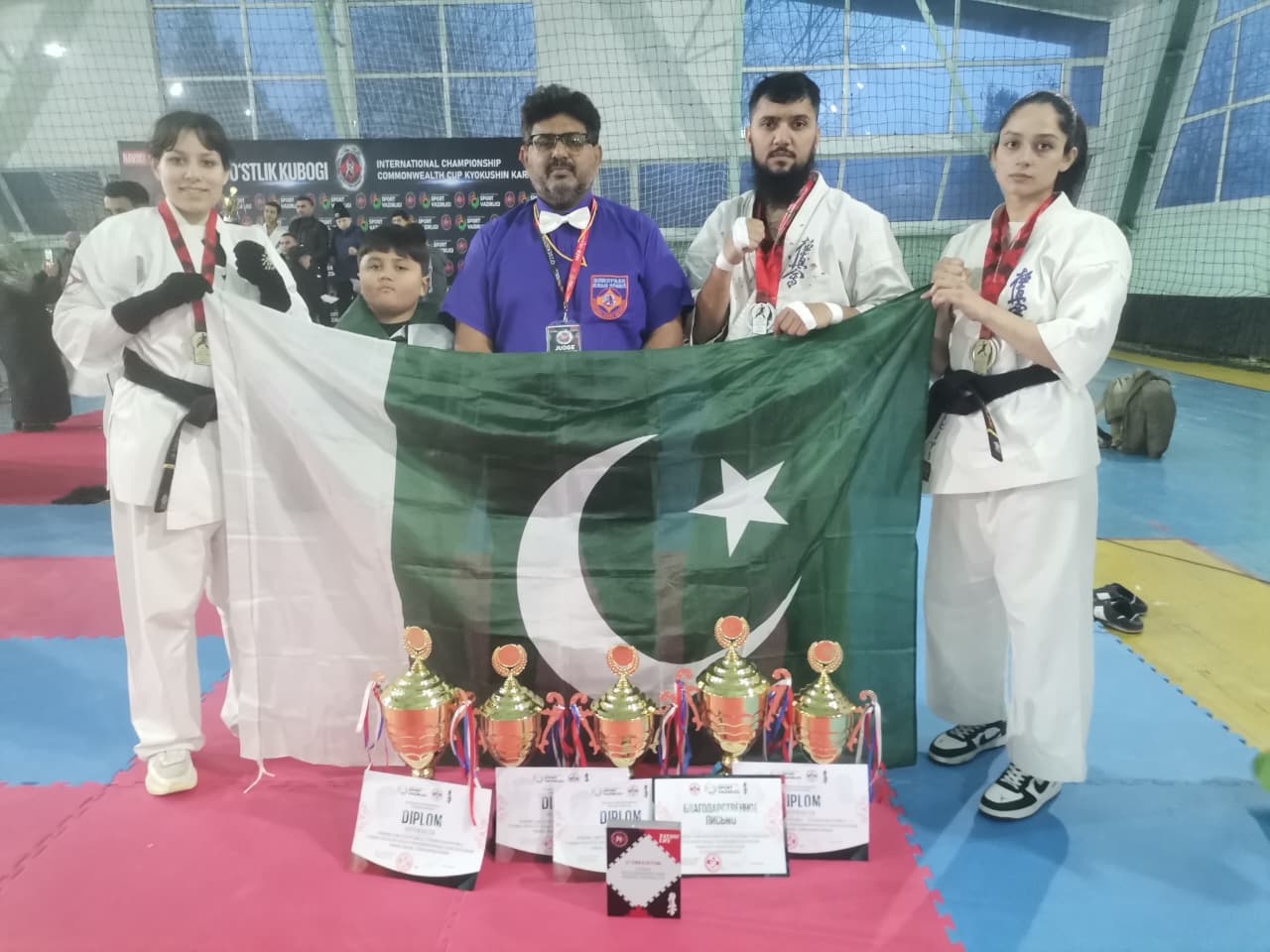 ازبکستان (بگ ڈیجٹ) پاکستانی مارشل آرٹ ٹیم بین الاقوامی دولت مشترکہ کیوکوشین کراٹے ٹورنامنٹ، نووئی، ازبکستان میں 3 گولڈ میڈل جیتنے میں کامیاب, لائبہ ربنواز جنجوعہ، عیشا ارم ، عبداللہ نے گولڈ میڈل جیتے ۔سینپائی ایشا ارم اور سینپائی لائبہ رب نواز جنجوعہ کیوکوشین پاکستان کی تاریخ کی دوسری خاتون کھلاڑی ہیں جنہوں نے بین الاقوامی کراٹے ٹورنامنٹ میں گولڈ میڈل جیتنے کا اعزاز حاصل کیا تفصیلات کے مطابق اعلیٰ کارکردگی کا مظاہرہ کرتے پاکستان کی سین پائی لائبہ رب نواز جنجوعہ نے (گولڈ میڈل اور سلور میڈل ) ,سینپائی عیشا ارم نے (گولڈ میڈل)عبداللہ نے (گولڈ میڈل) اور سینسی حسن علی نے دو سلور میڈل حاصل کیے, شیہان بابر بھٹی کو بہترین ریفری اور جج کا خصوصی اعزازدیاگیاراجہ مارشل آرٹس , کیوکوشین پاکستان کی تاریخ میں پہلی بار بین الاقوامی کیوکوشین کراٹے ٹورنامنٹ میں تین گولڈ میڈل حاصل کیے اور بین الاقوامی فضیلت کے ایک نئے دور کا آغاز کیا
